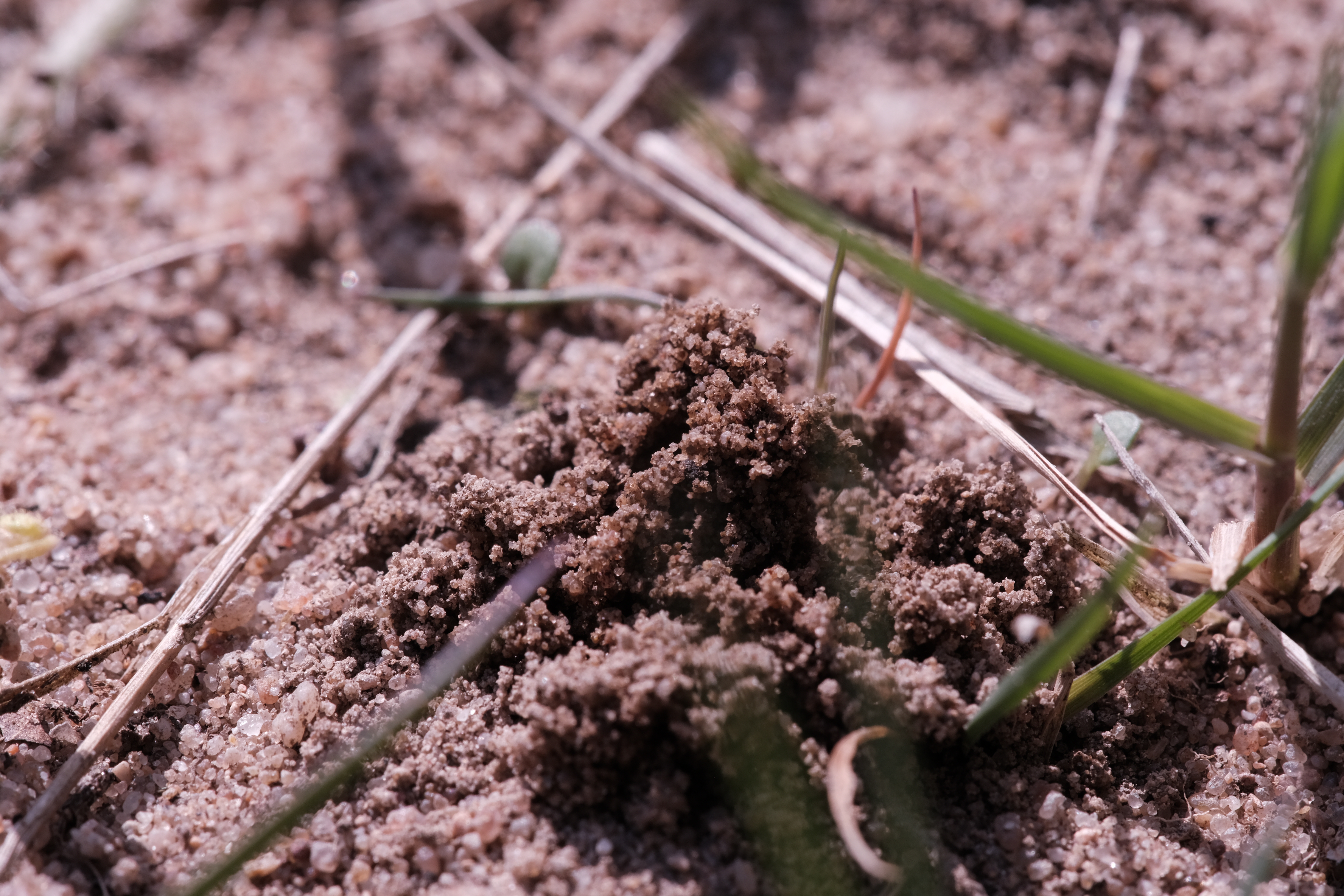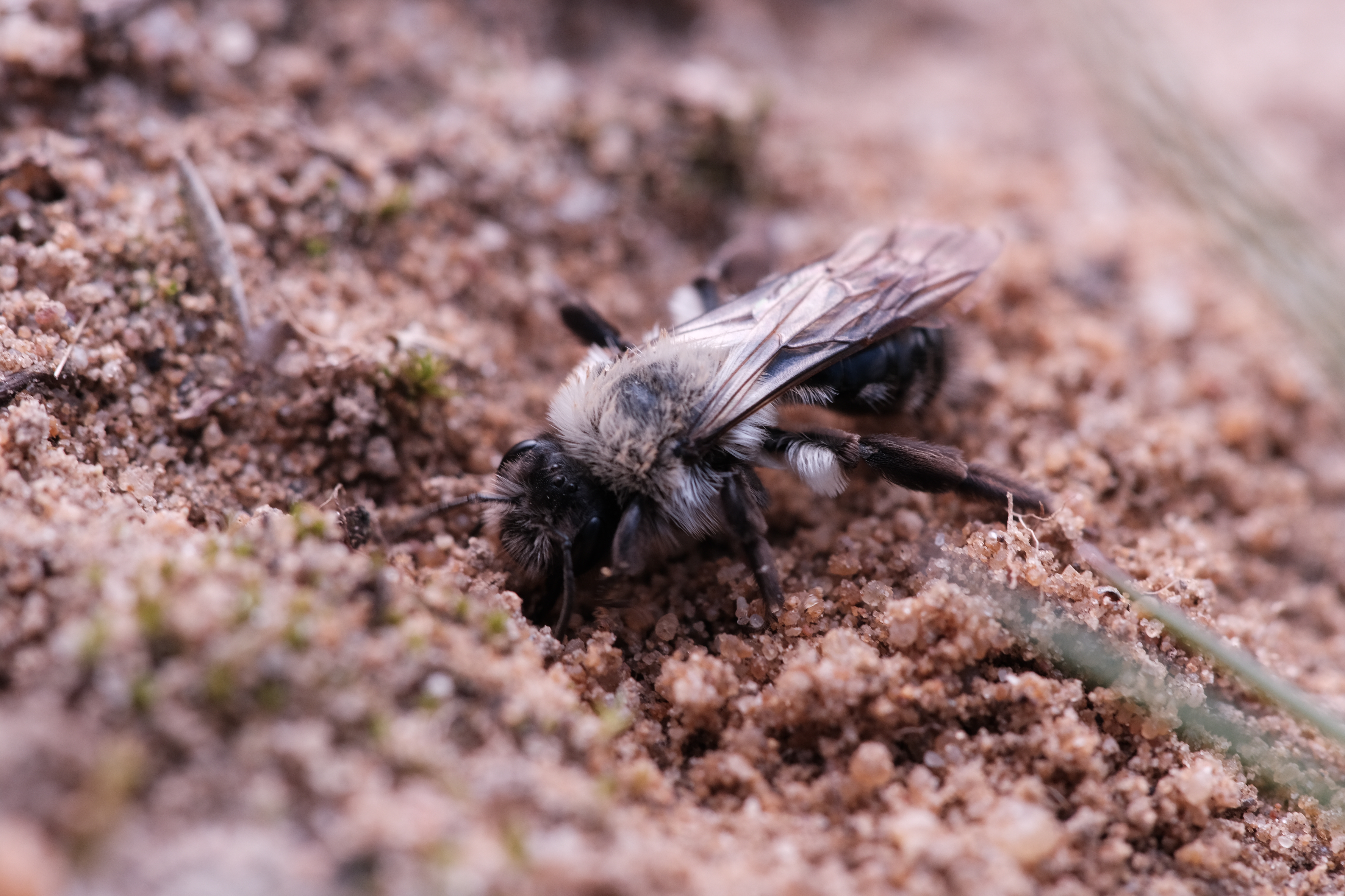 Ihre Nester baut die Große Weiden-Sandbiene auf kahlen oder nur leicht bewachsenen Flächen in sandigen Böden.